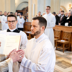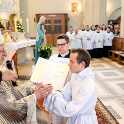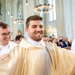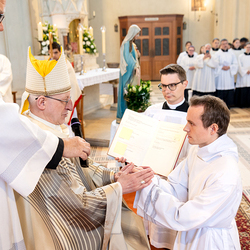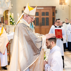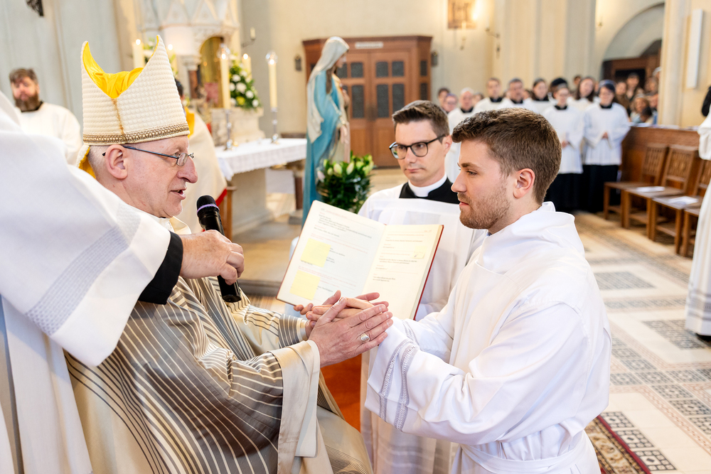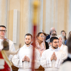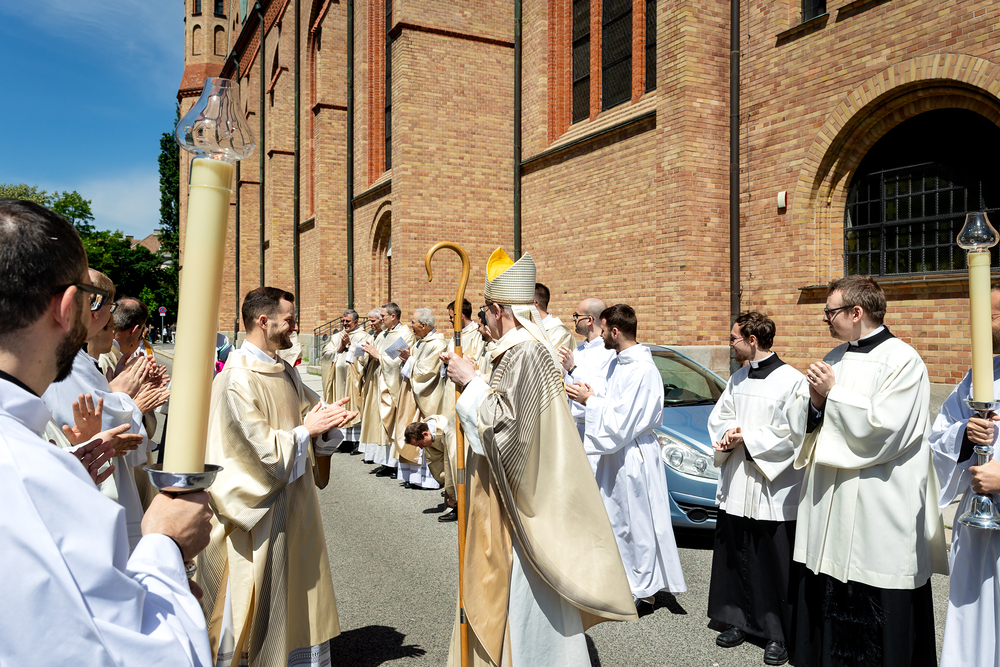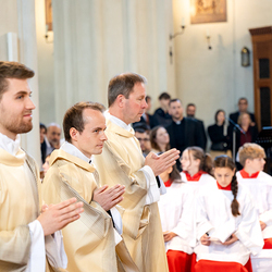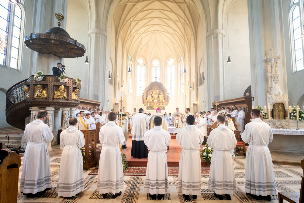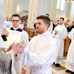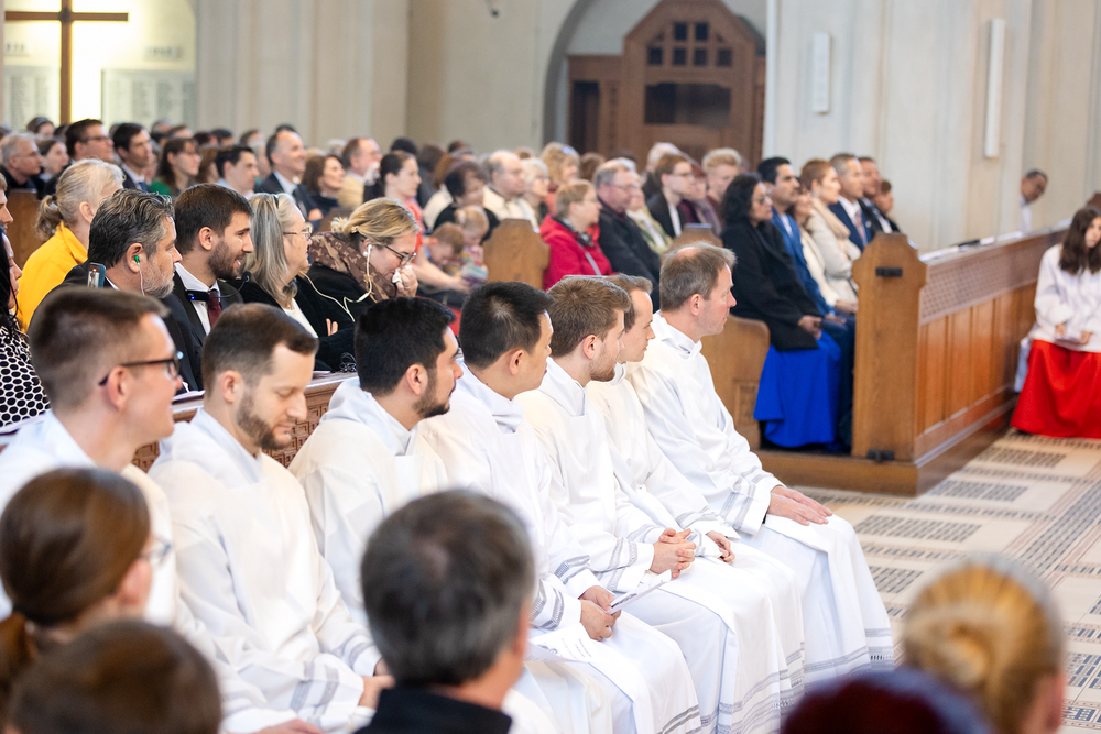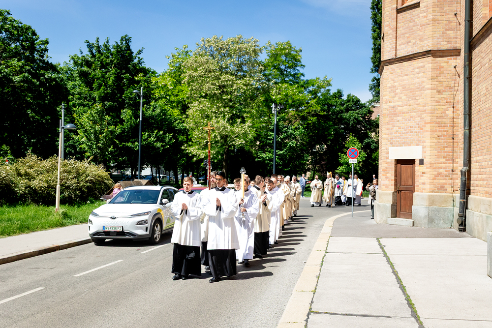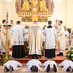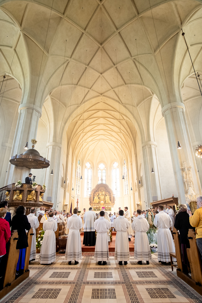 Am 10. Mai weihte Weihbischof Franz Scharl in der Pfarrkirche St. Leopold Donaufeld sieben Männer zu Diakonen für die Erzdiözese Wien. Die Kandidaten kommen aus verschiedenen Gemeinschaften: drei aus dem Wiener Priesterseminar, einer aus dem Benediktinerpriorat St. Josef in Maria Roggendorf und drei aus dem diözesanen Missionskolleg „Redemptoris Mater". Manuel Rennhofer, Joachim Loshehand und Julius Moses Münzer kommen aus dem Wiener Priesterseminar, P. Leo Maria Zehetgruber gehört dem Benediktinerpriorat St. Josef in Maria Roggendorf an drei weitere Kandidaten stammen aus dem diözesanen Missionskolleg „Redemptoris Mater“. Diese Vielfalt unterstreicht die Breite der geistlichen Berufungen in der Erzdiözese. Wir waren mit der Kamera dabei.