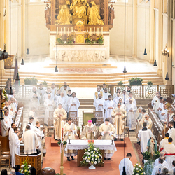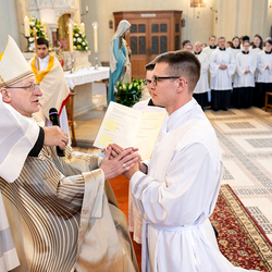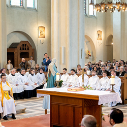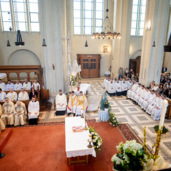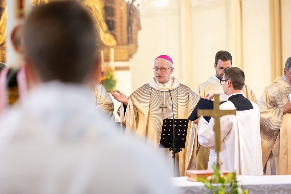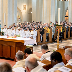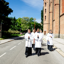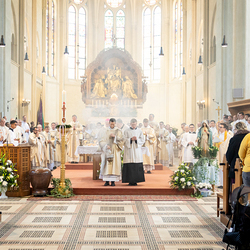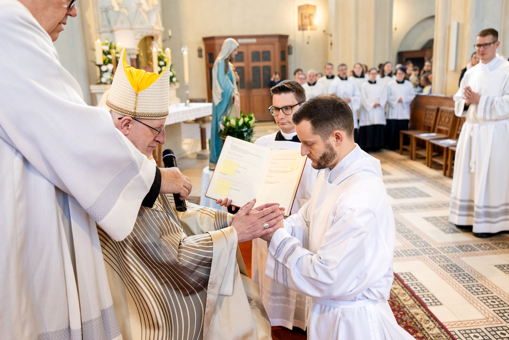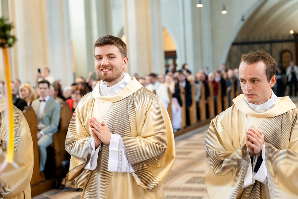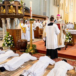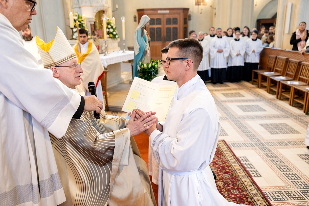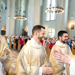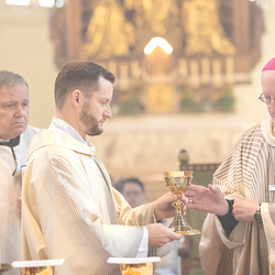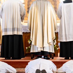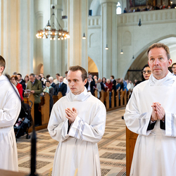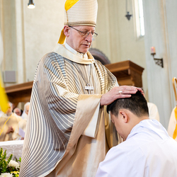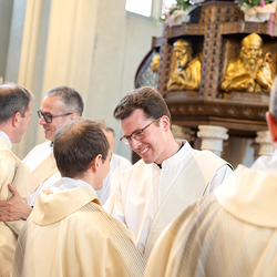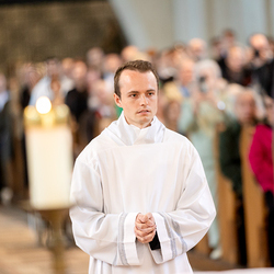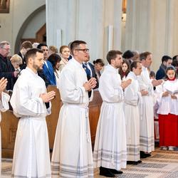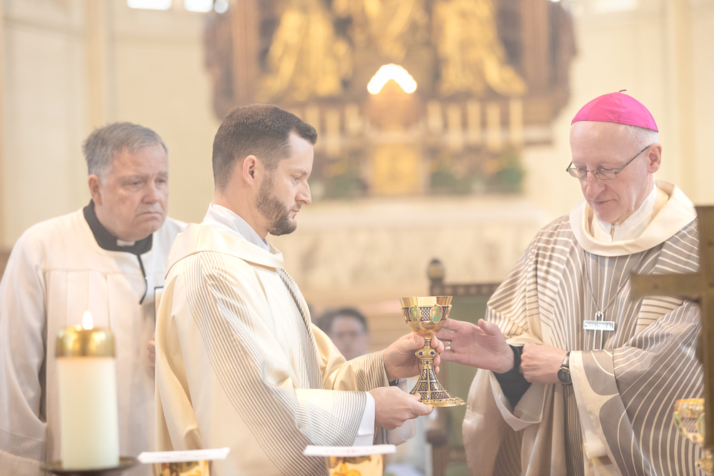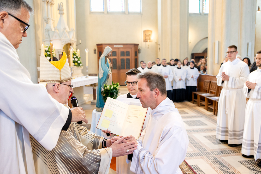 Am 10. Mai weihte Weihbischof Franz Scharl in der Pfarrkirche St. Leopold Donaufeld sieben Männer zu Diakonen für die Erzdiözese Wien. Die Kandidaten kommen aus verschiedenen Gemeinschaften: drei aus dem Wiener Priesterseminar, einer aus dem Benediktinerpriorat St. Josef in Maria Roggendorf und drei aus dem diözesanen Missionskolleg „Redemptoris Mater". Manuel Rennhofer, Joachim Loshehand und Julius Moses Münzer kommen aus dem Wiener Priesterseminar, P. Leo Maria Zehetgruber gehört dem Benediktinerpriorat St. Josef in Maria Roggendorf an drei weitere Kandidaten stammen aus dem diözesanen Missionskolleg „Redemptoris Mater“. Diese Vielfalt unterstreicht die Breite der geistlichen Berufungen in der Erzdiözese. Wir waren mit der Kamera dabei.