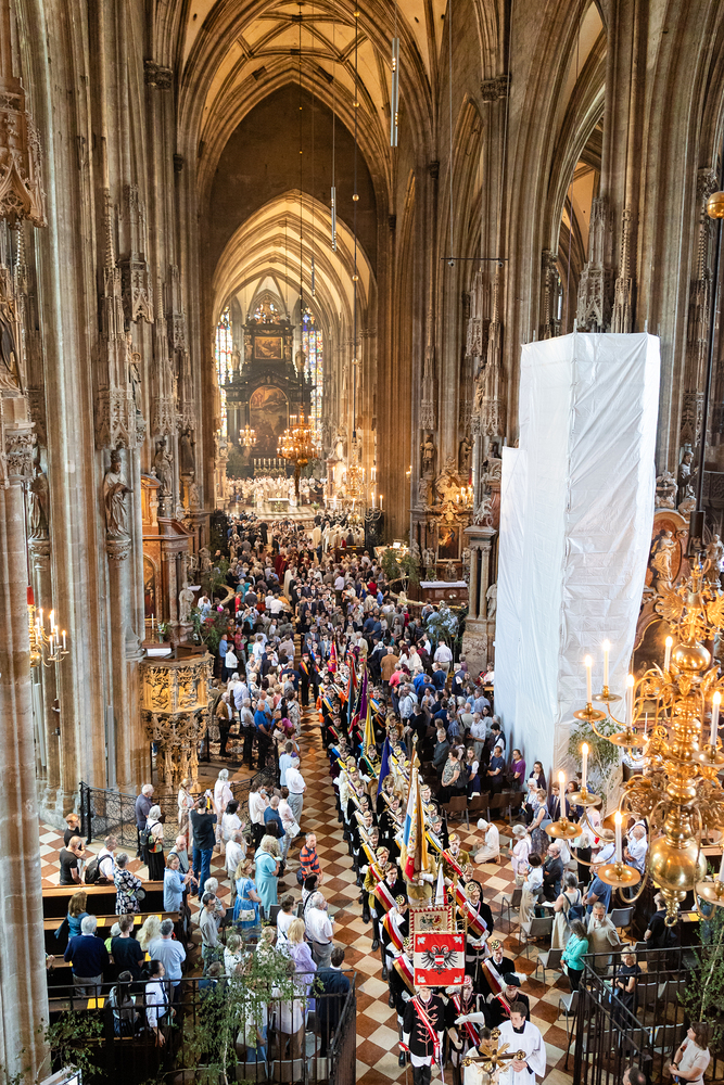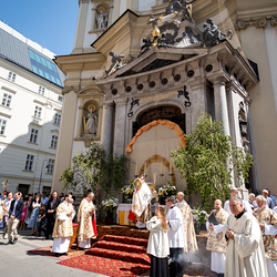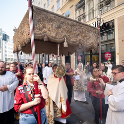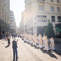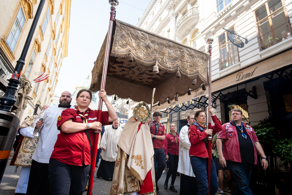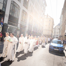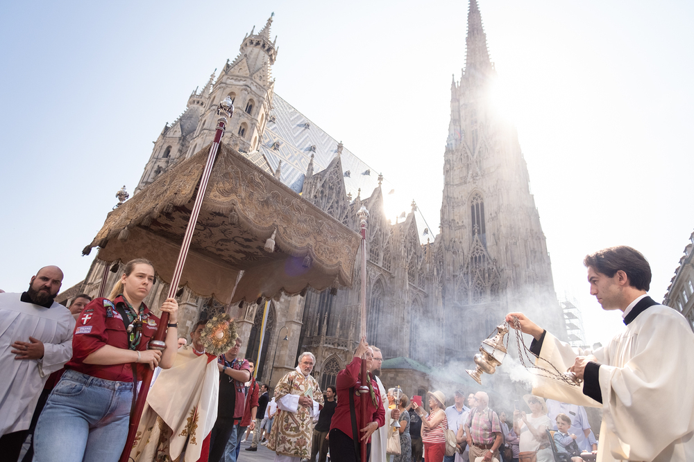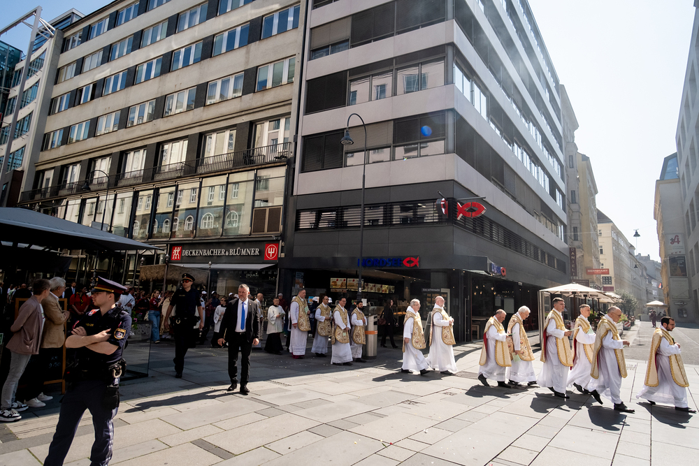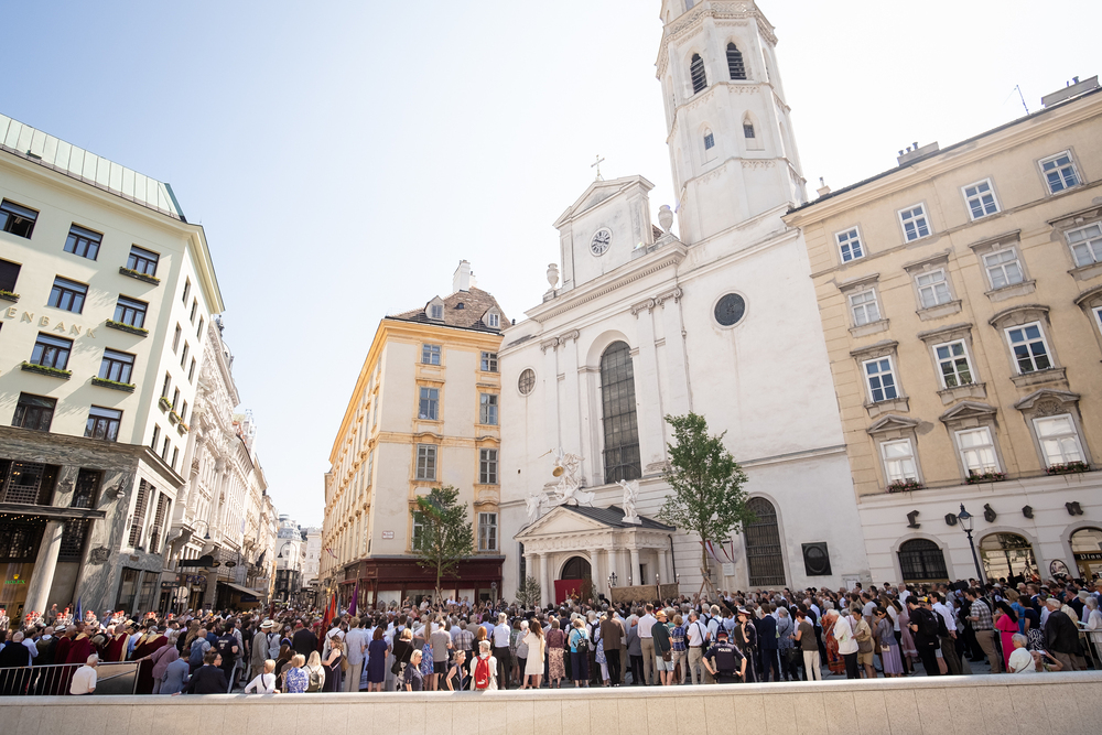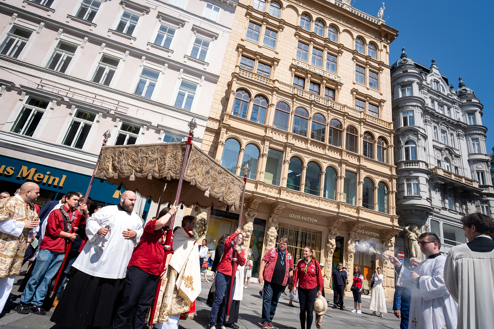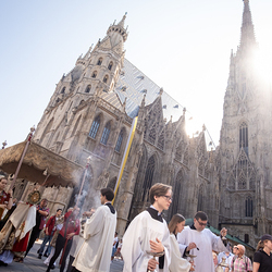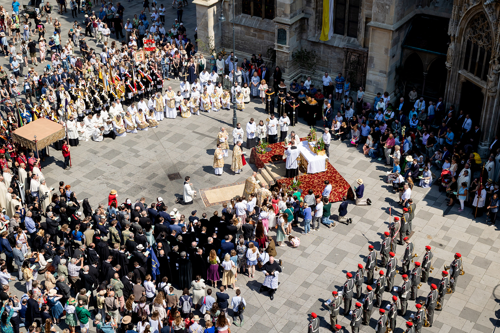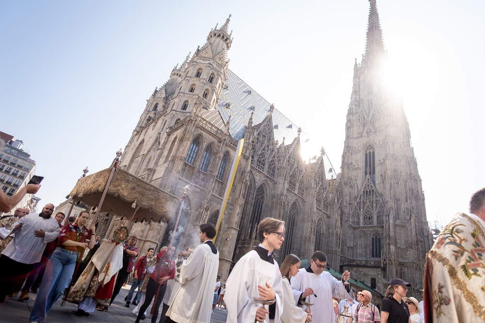 Josef Grünwidl betonte beim Stadtumzug anlässlich Fronleichnam die untrennbare Verbindung zwischen dem religiösen Feiertag und der christlichen Verantwortung, Gottes Schöpfung zu bewahren und eine „ökologische Umkehr“ angesichts der Klimakrise einzuleiten. Er dankte allen, die durch nachhaltiges Handeln und politischen Einsatz dazu beitragen, notwendige Maßnahmen zu ergreifen, um die dramatischen Folgen des Klimawandels abzuwenden. Die Fronleichnamsprozession, die vom Stephansdom ausging und Stationen am Michaelerplatz sowie am Graben bei der Peterskirche umfasste, zog erneut zahlreiche Gläubige und kirchliche Gruppierungen an. Auch politische Vertreter waren anwesend. Wir waren mit der Kamera dabei.