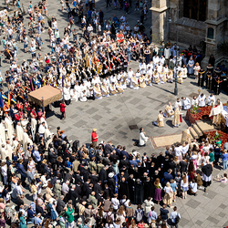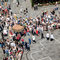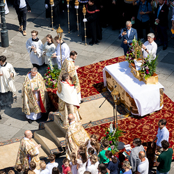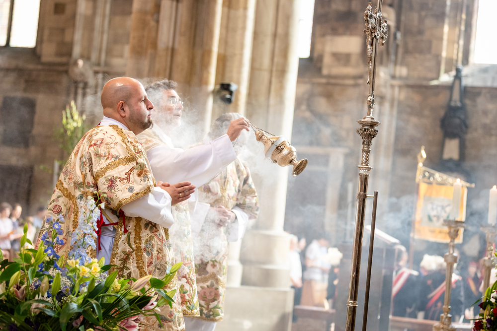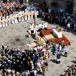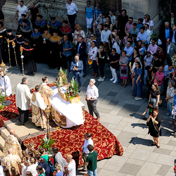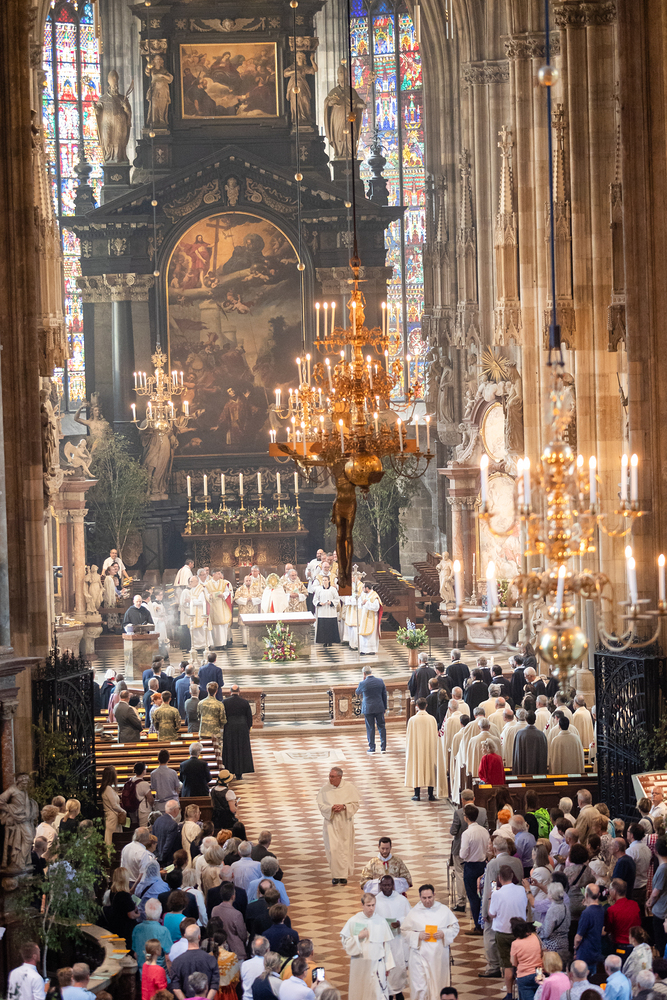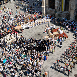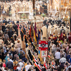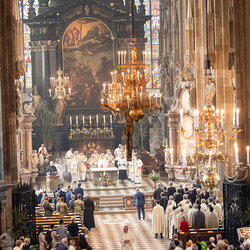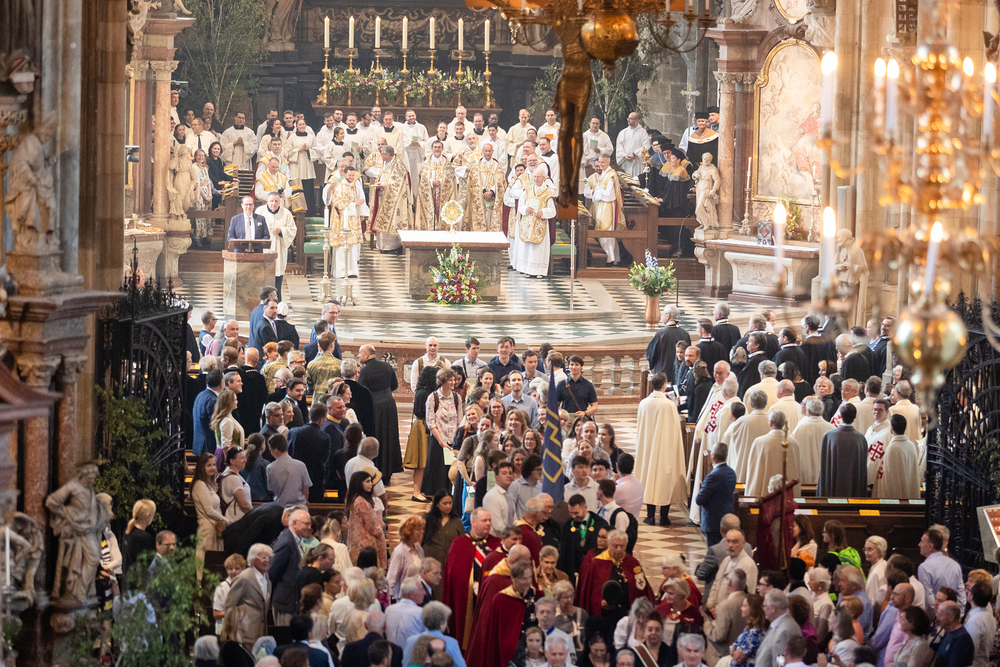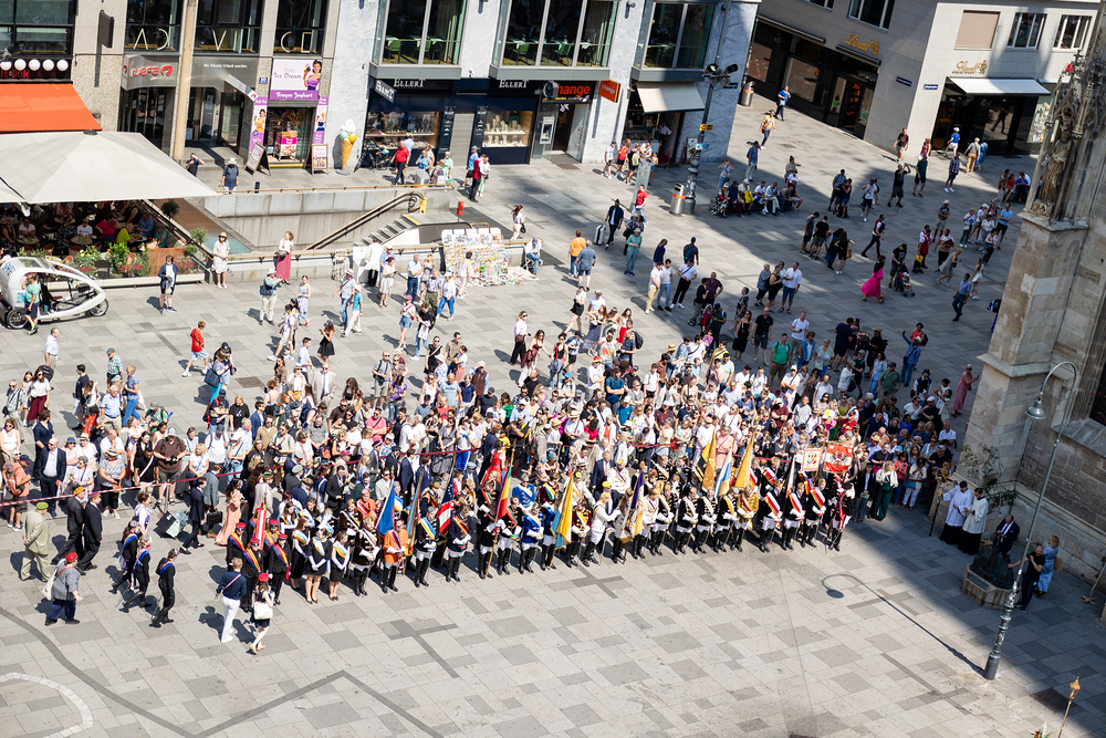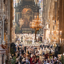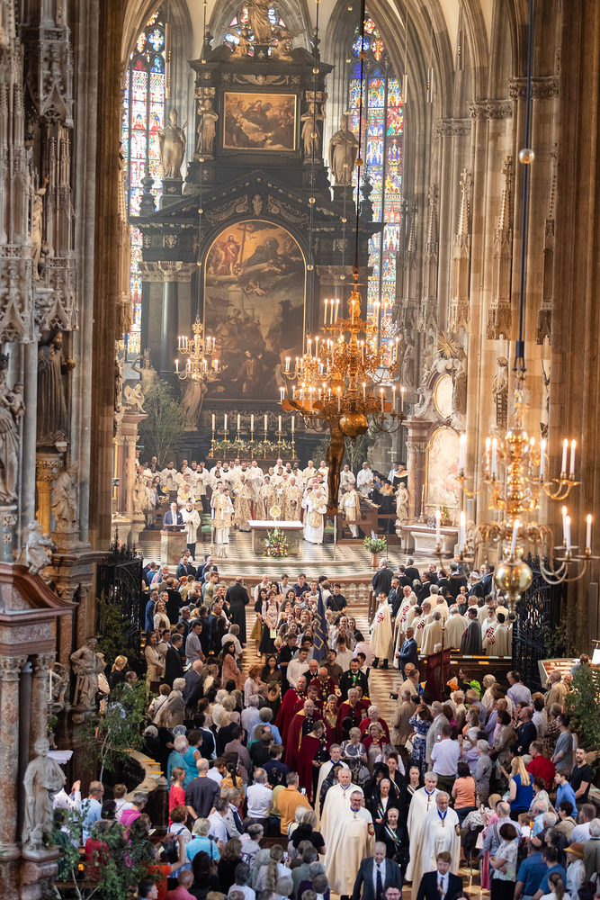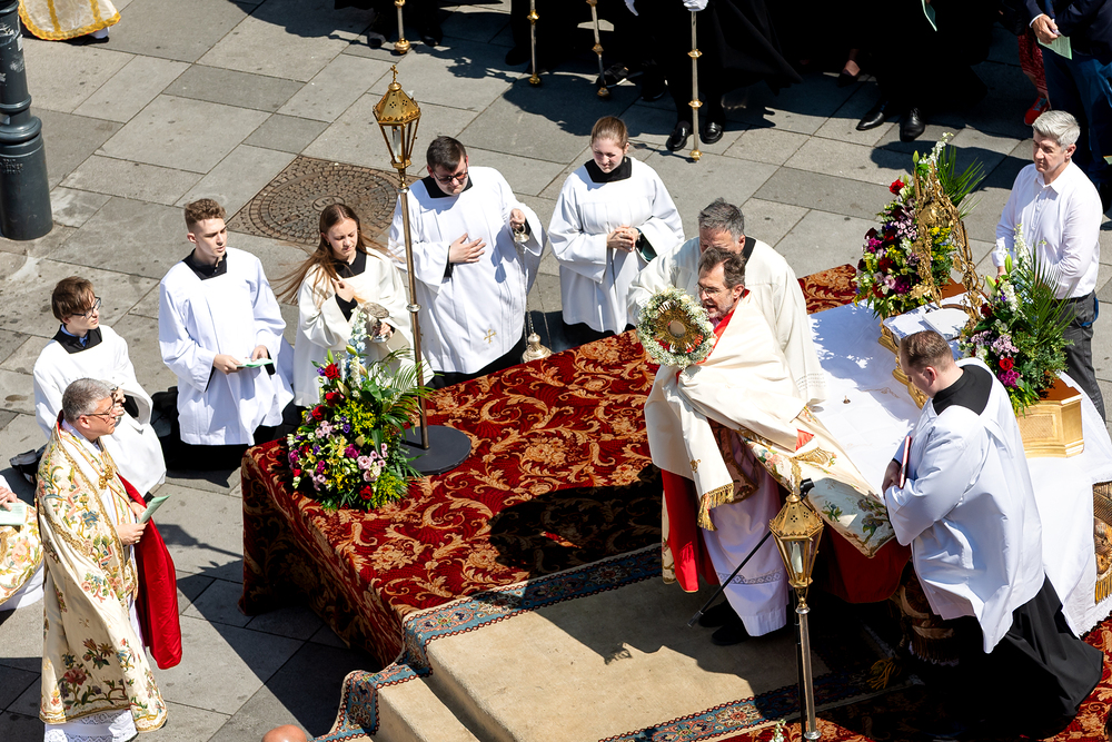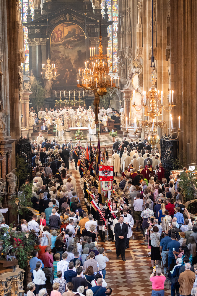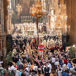 Josef Grünwidl betonte beim Stadtumzug anlässlich Fronleichnam die untrennbare Verbindung zwischen dem religiösen Feiertag und der christlichen Verantwortung, Gottes Schöpfung zu bewahren und eine „ökologische Umkehr“ angesichts der Klimakrise einzuleiten. Er dankte allen, die durch nachhaltiges Handeln und politischen Einsatz dazu beitragen, notwendige Maßnahmen zu ergreifen, um die dramatischen Folgen des Klimawandels abzuwenden. Die Fronleichnamsprozession, die vom Stephansdom ausging und Stationen am Michaelerplatz sowie am Graben bei der Peterskirche umfasste, zog erneut zahlreiche Gläubige und kirchliche Gruppierungen an. Auch politische Vertreter waren anwesend. Wir waren mit der Kamera dabei.