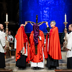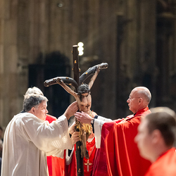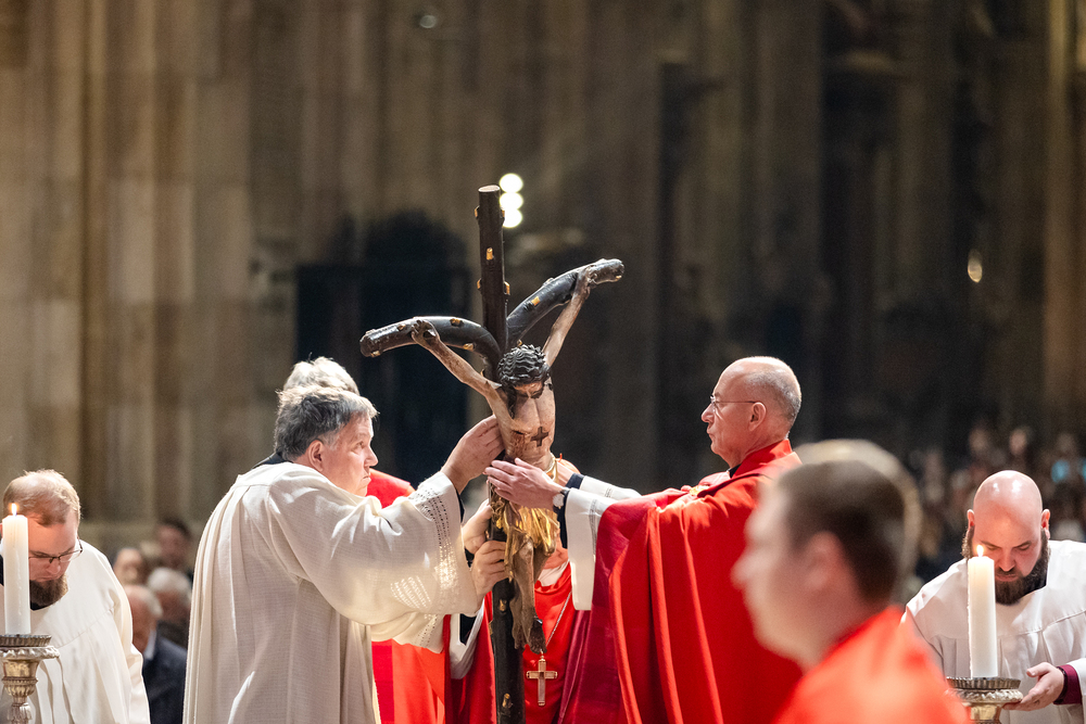 Der Karfreitag steht ganz im Zeichen der Trauer: Es geht um das Leiden, die Kreuzigung und den Tod Jesu – und was das für die Christen bedeutet. Die Liturgie an dem Tag ist in ihrer Form im Kirchenjahr einmalig. Wir haben Kardinal Schönborn im Stephansdom fotografisch begleitet.