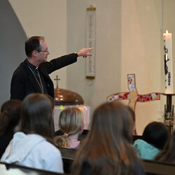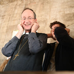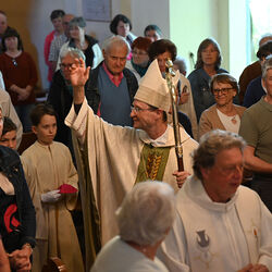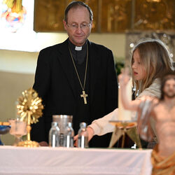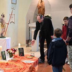 Die Kreuzstettner Minis begleiteten Weihbischof Stephan Turnovzsky bis zu den Kirchenglocken. Anfangs des Visitationstages traf er die Ministranten. Danach lud er die Bevölkerung von Niederkreuzstetten zu einem lockeren Austausch bei "Frag den Bischof" ein. Nach einem gemeinsamen Mittagessen und einer Pfarrgemeinderatssitzung folgte eine Sternwallfahrt zur Kirche am Heiligen Berg. Dort zelebrierte Weihbischof Turnovszky die Visitationsmesse und traf sich anschließend mit den Pilgern zur Agape.